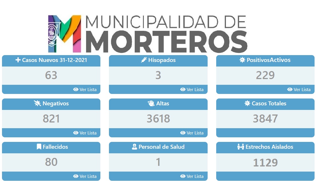 En el último reporte de 2021 se detalla que en el Hospital de Campaña se realizaron 159 hisopados, 29 fueron positivos y en la parte privada se realizaron 34 hisopados con resultados positivos.