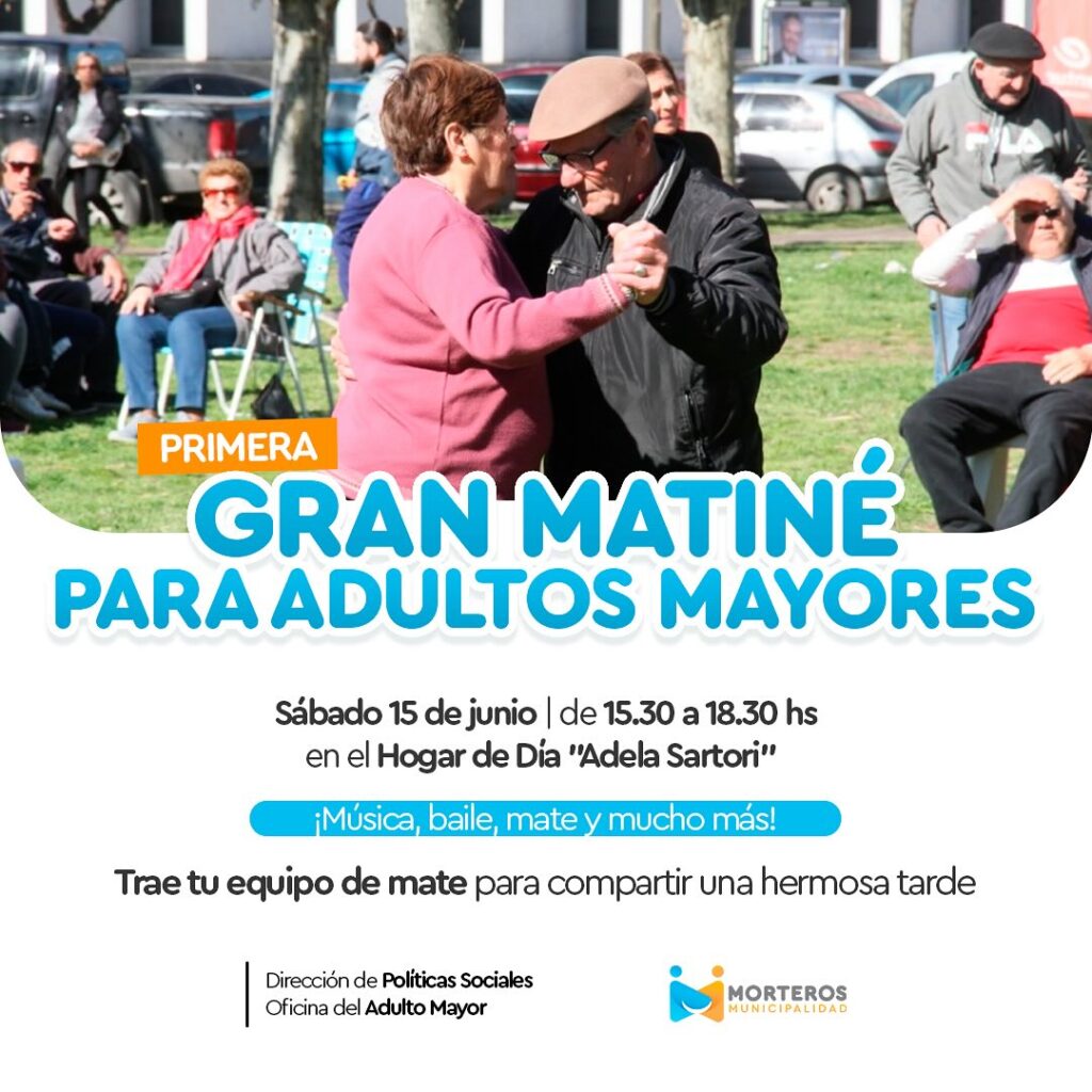 Este sábado 15 de junio, en el Hogar de Día “Adela Sartori” para disfrutar de música, baile y muchas sorpresas, desde las 15:30hs hasta las 18:30.