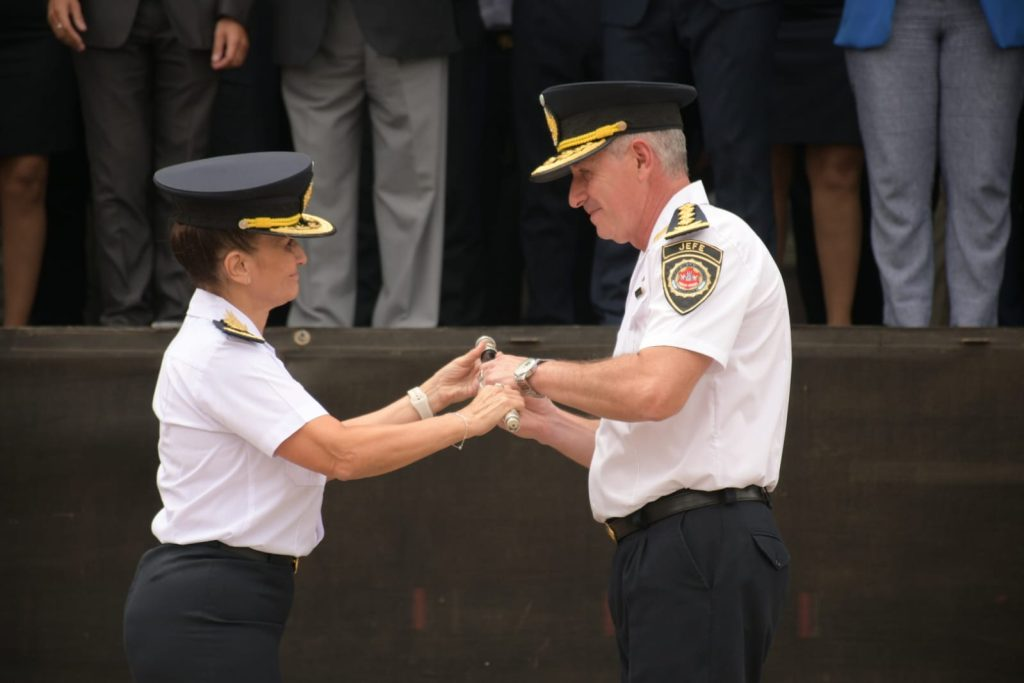 Por su parte, la jefa saliente manifestó: «Este traspaso habla de que los objetivos se cumplieron, pero que hay otros objetivos por cumplir”. “Acá lo importante es la institución, indistintamente de quien la conduzca, una institución de más de 160 años, que está de pie, que está firme, que está capacitada, que está formada y que está disciplinada”, concluyó.