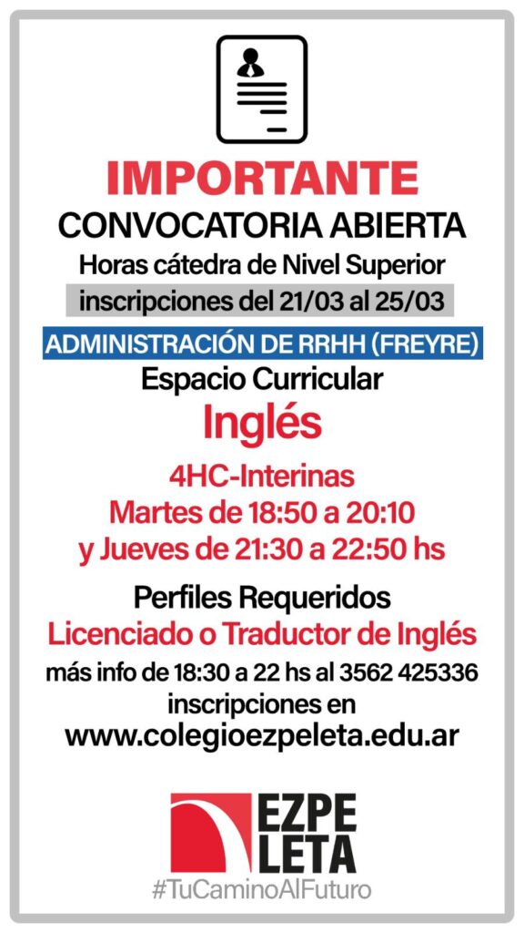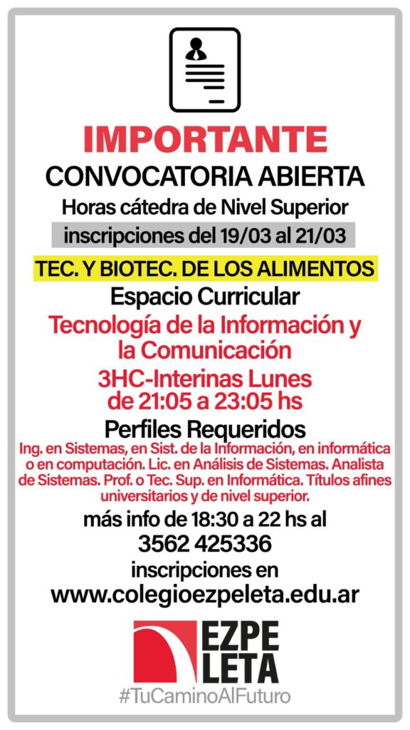 Cargo MEP en agropecuaria lunes a viernes de 13 a 17:25hs. Por consultas o inscripciones ipeayt242@gmail.com