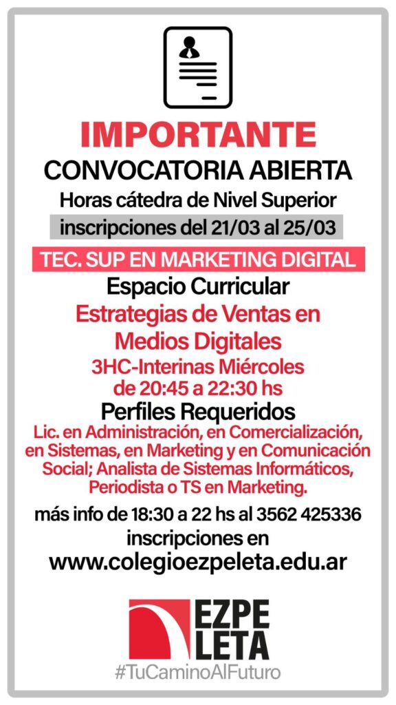 Para más información de 18:30 a 22hs en la sede de la Institución educativa o al 3562425336
