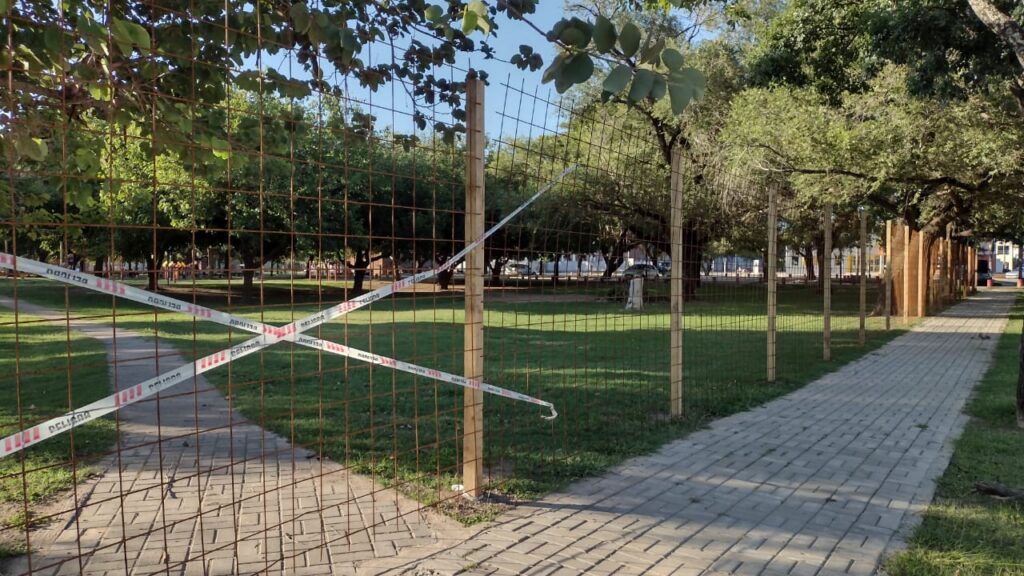 Se colocaron columnas con alambrado limitando el lugar al paso de las personas desde el estacionamiento hasta una de las lomas que funciona como tribuna del anfiteatro del Lago Norte.
