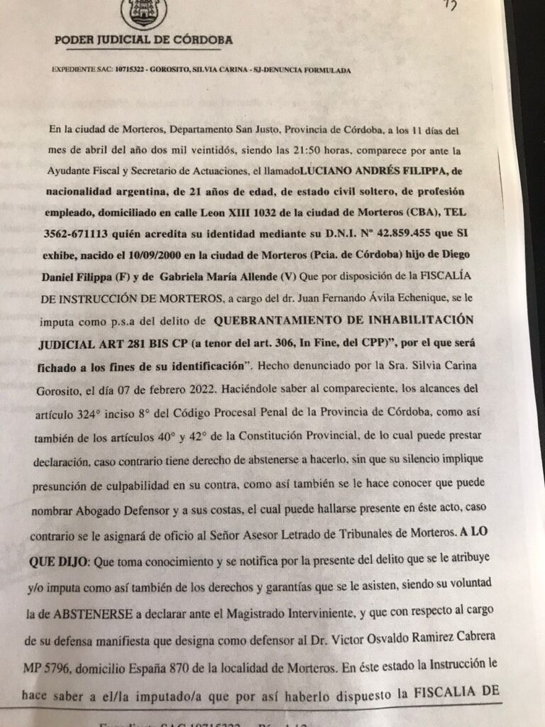 La imputación y el expediente llegaron a San Cristóbal, donde la Fiscal Hemilce Fissore definirá nuevas medidas, y que según adelantó a DESDEACA.INFO Yanina Giménez, madre de una de las jóvenes, se agravaría la causa contra Luciano Filippa.