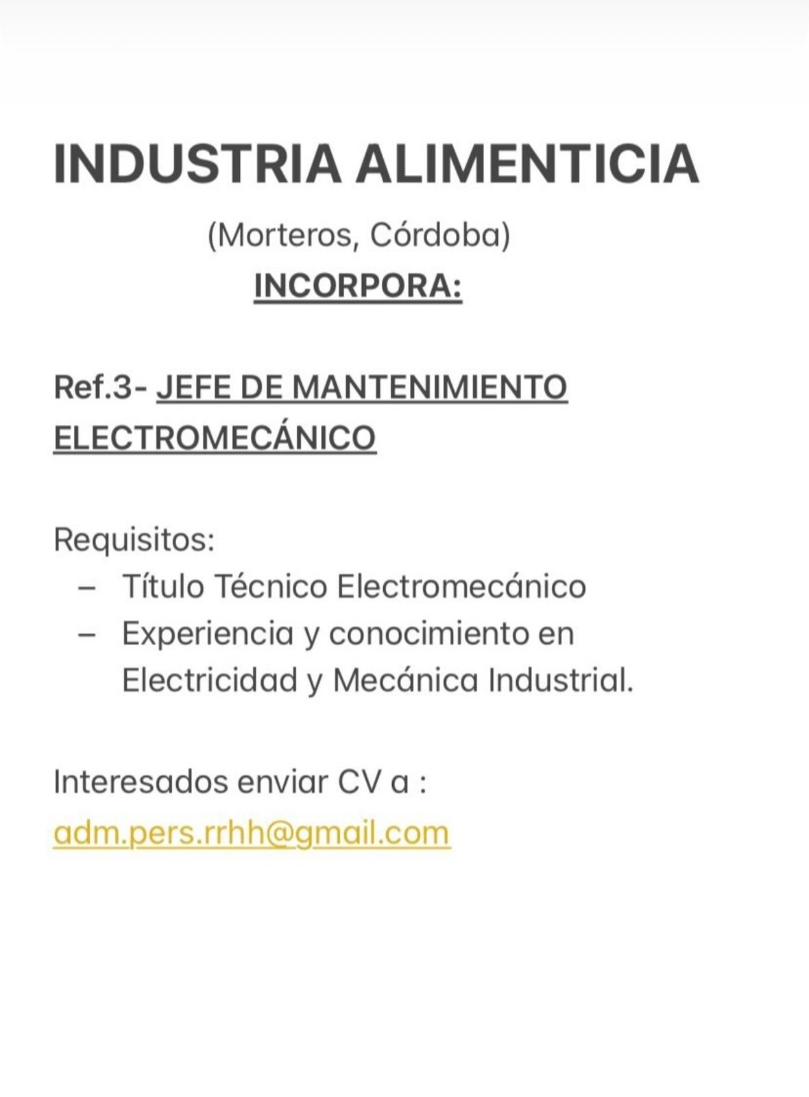 Interesados enviar CV a adm.pers.rrhh@gmail.com