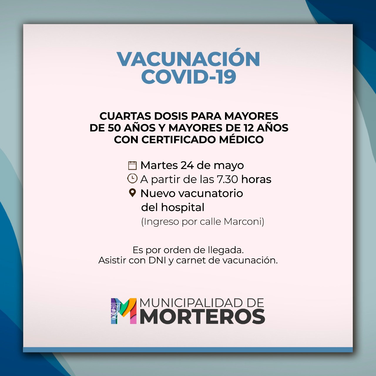 En tanto, el martes 24, será el turno de los mayores de 12 y 50 años, con certificado médico para la cuarta dosis. También será desde las 7:30 y por orden de llegada. Asistir con DNI y el carnet de vacunación.