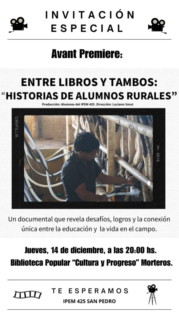 Avant Premier del documental Entre Libros y Tambos: historias de alumnos rurales