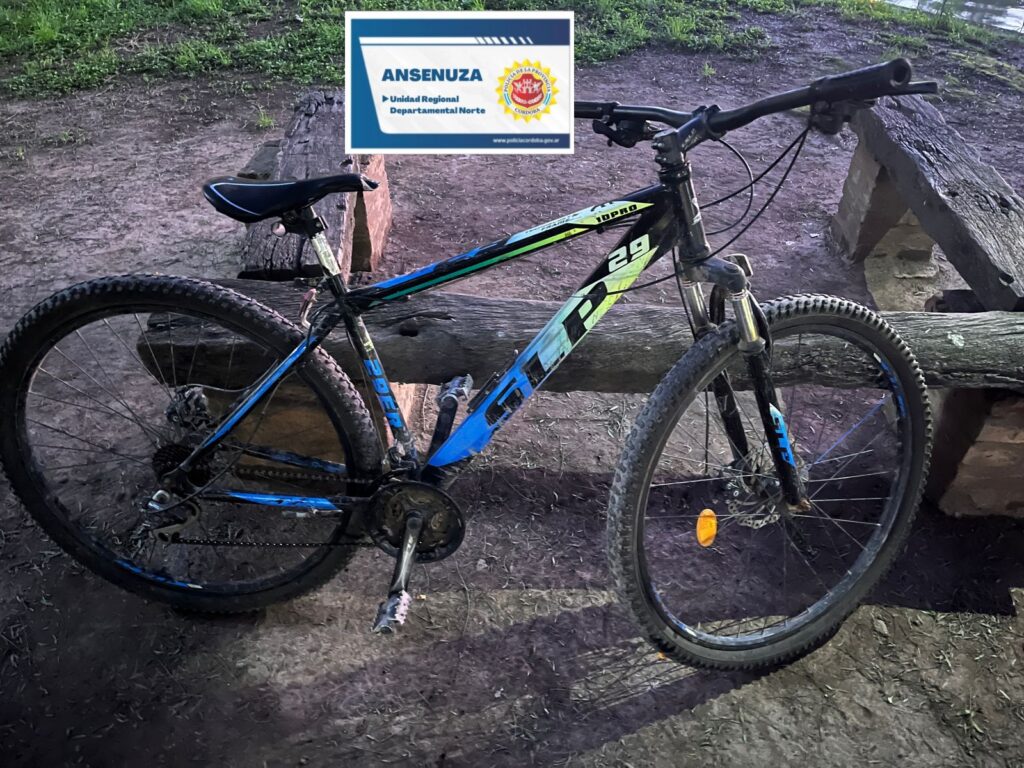 El jueves a las 20:40hs. se hace presente en la Unidad Judicial un joven de 23 años, el cual denuncia la sustracción de una Bicicleta Tipo MTB, de marca SLP, rod 29 de color Negro. Se logra observar a la misma en calle San Martín, sobre el predio de Lago Sur. Personal policial procede al resguardo y traslado a sede policial.