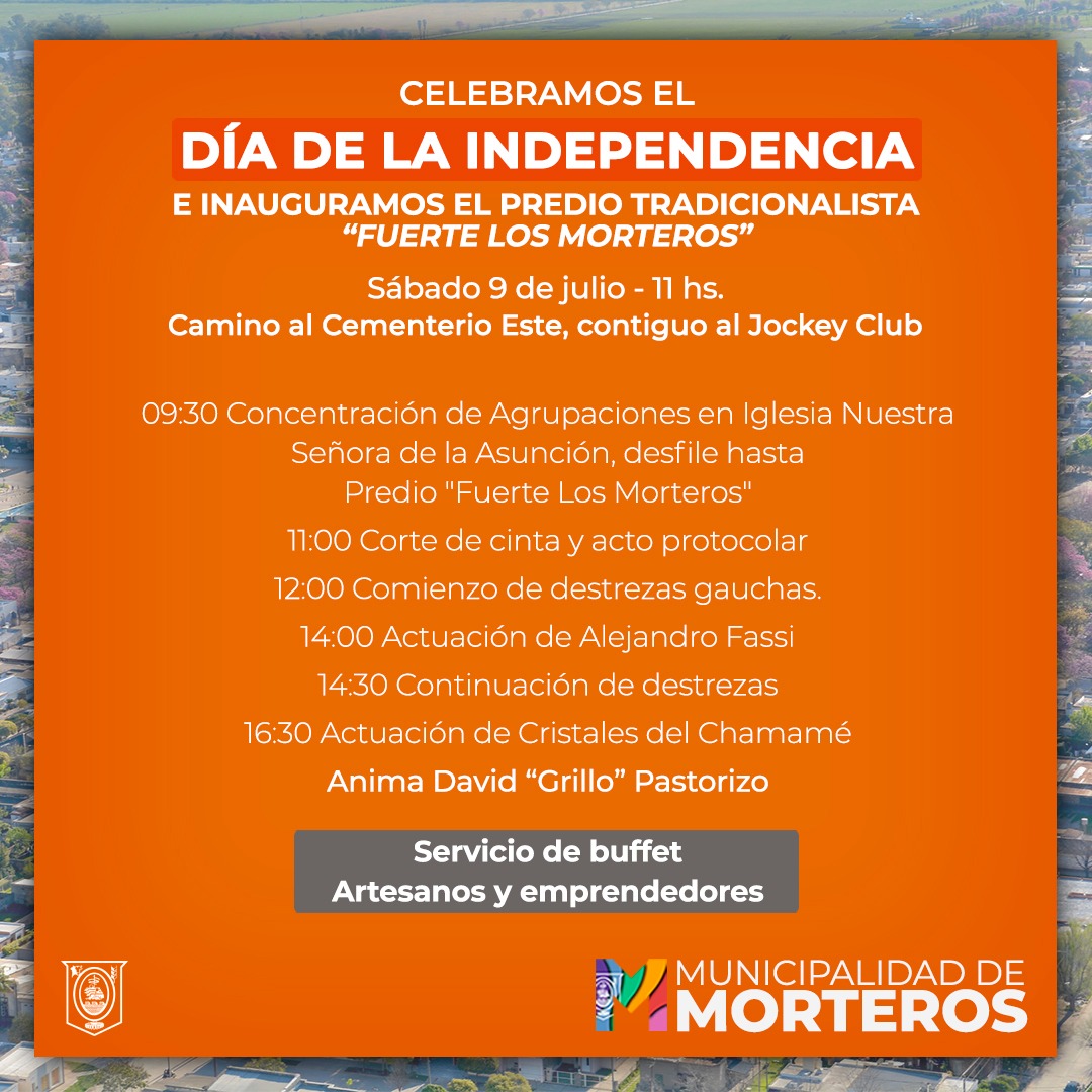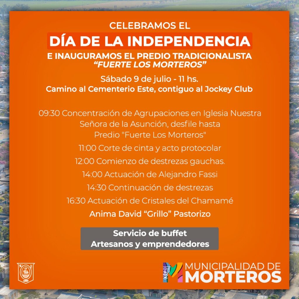 El Día de la Independencia tendrá su festejo en la ciudad. El municipio organiza un gran evento para el sábado 9, donde también realizarán la inauguración de un predio tradicionalista “Fuerte Los Morteros”, que está ubicado entre el Jockey Club y el Cementerio del Este.