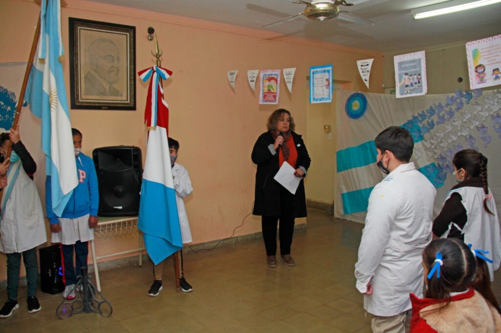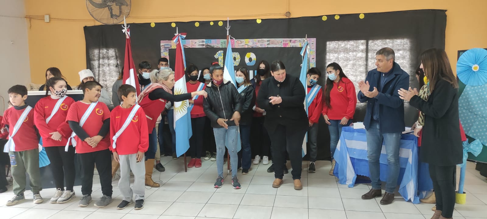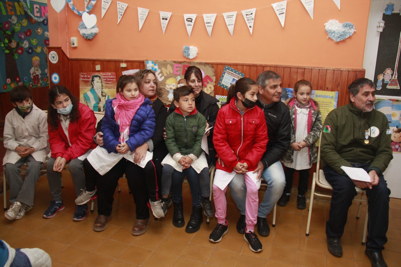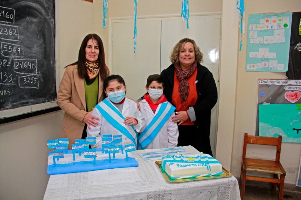 El intendente, José Bria, junto a la vice intendente, Valeria Gandino, la Secretaria de Educación, Mary Blangetti, y el ex combatiente de Malvinas, Roque Luli Weiss, visitaron las escuelas rurales para tomarle promesa de lealtad a la bandera a los alumnos de 4° grado de cada institución educativa.