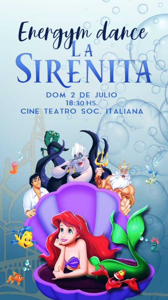La escuela de baile Energym and Dance ya tiene una nueva obra para esta temporada. El próximo domingo 2 de julio estrenará “La Sirenita, el musical” en Sociedad Italiana de Morteros.