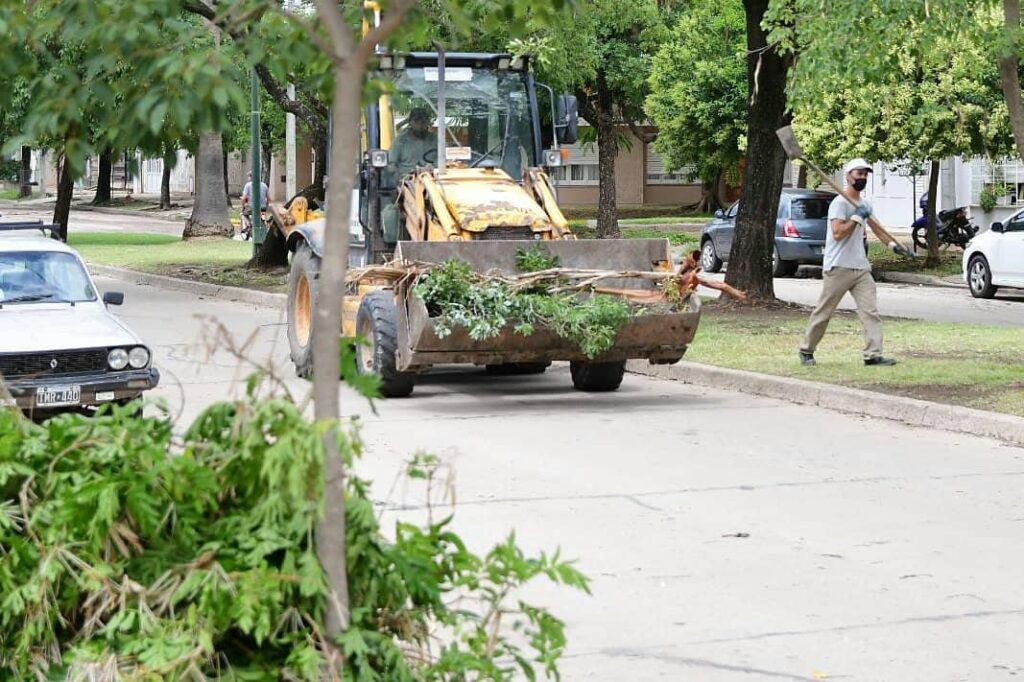 Esta madrugada la tormenta ocasionó caídas de ramas y árboles en diferentes partes de la ciudad, “nuestras cuadrillas trabajaron desde temprano para poner en condiciones nuevamente las calles de Morteros”, dieron a conocer desde el Municipio local.