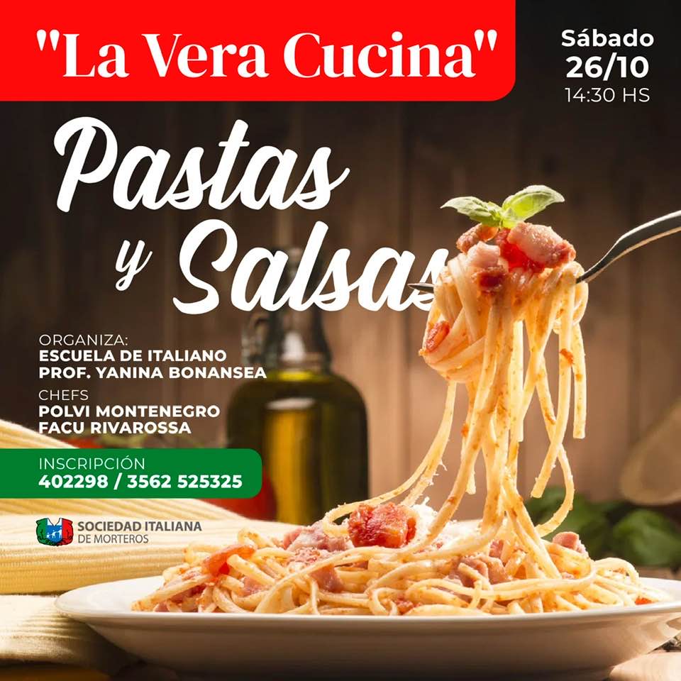 Este mes habrá una nueva edición de la propuesta llamada “La Vera Cucina”, que se llevará a cabo el sábado 26 de octubre a las  14:30 hs. en el SUM de Sociedad Italiana de Morteros