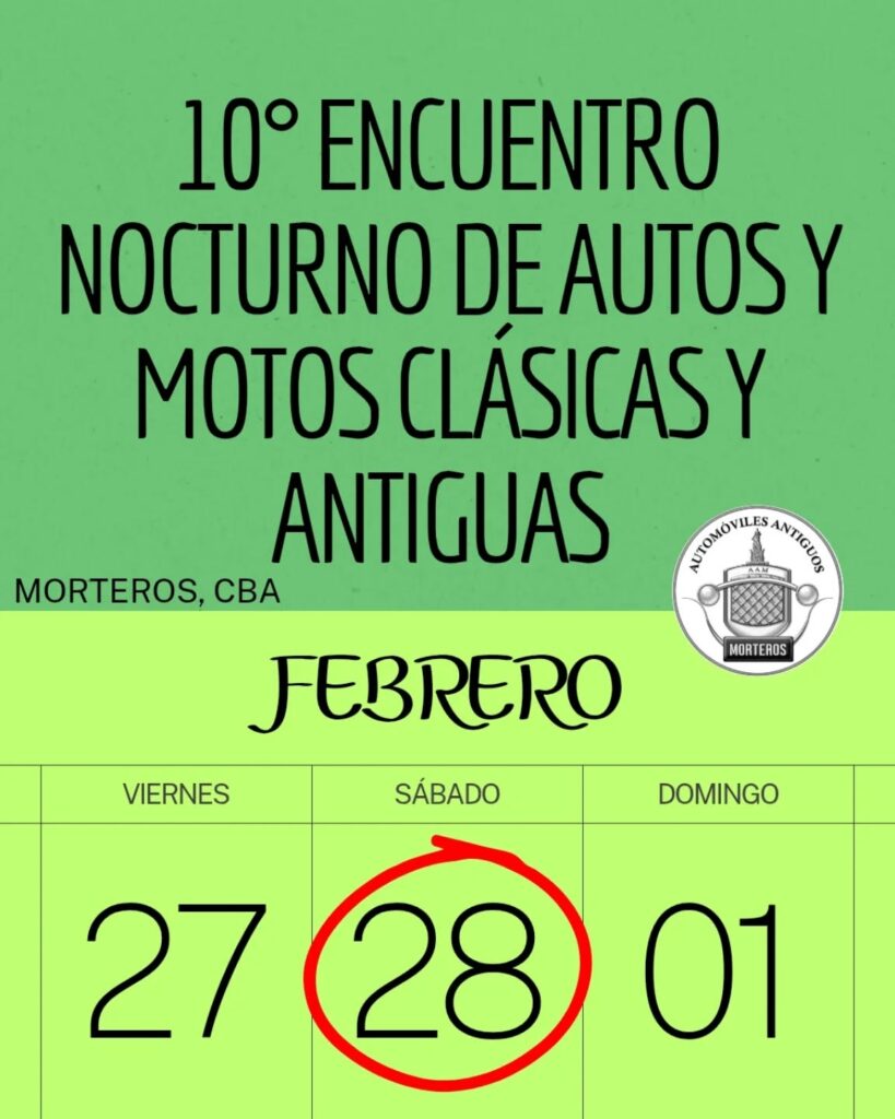 La ciudad de Morteros ya comienza a palpitar una nueva edición del tradicional Encuentro Nocturno de Autos y Motos Clásicas y Antiguas, que en 2026 celebrará su décima edición. El evento se llevará a cabo el sábado 28 de febrero, organizado por Automóviles Antiguos Morteros, y promete volver a convertir a la ciudad en un punto de referencia para los amantes de los fierros históricos.