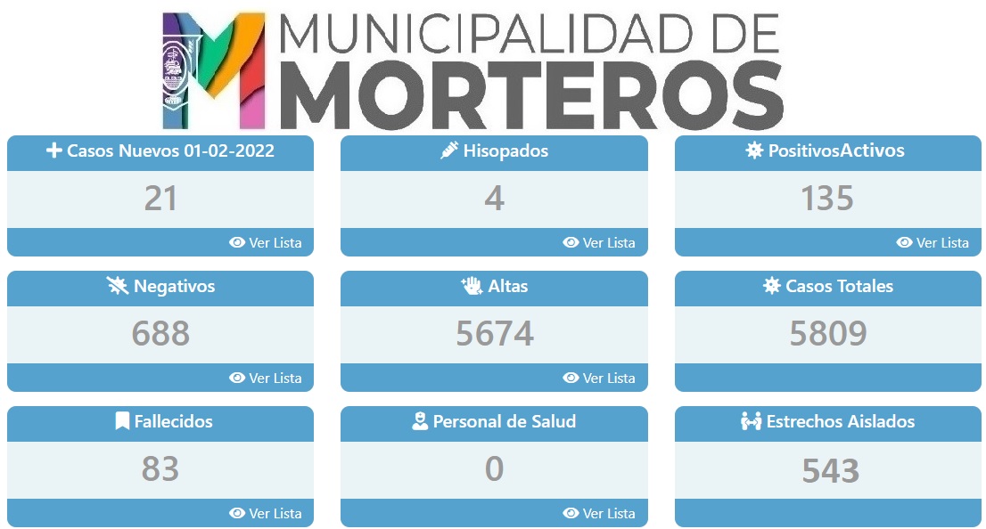 Este martes, primer día de febrero, 21 nuevos positivos dice el reporte del Área de Salud del Municipio. Además 16 personas recuperadas y 4 hisopados en estudio.