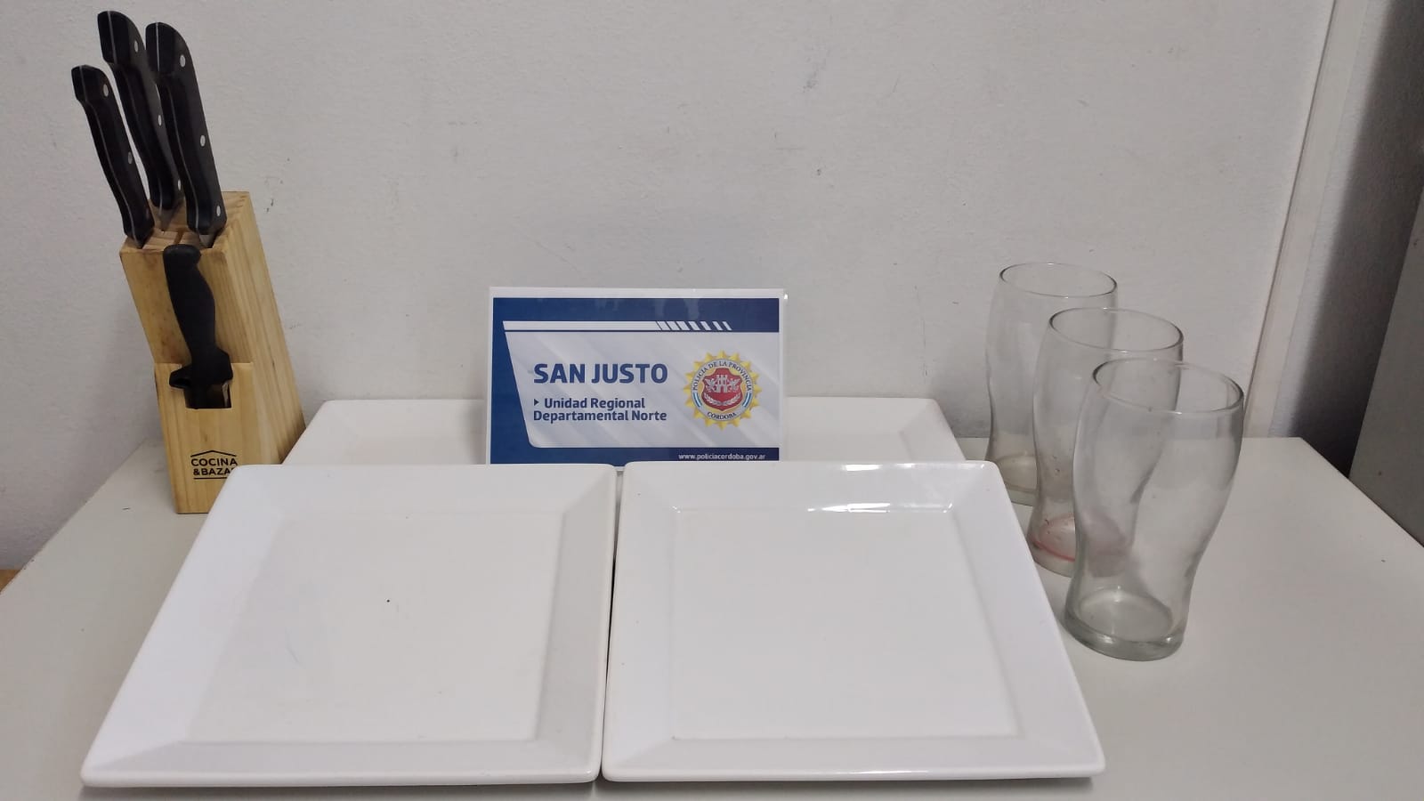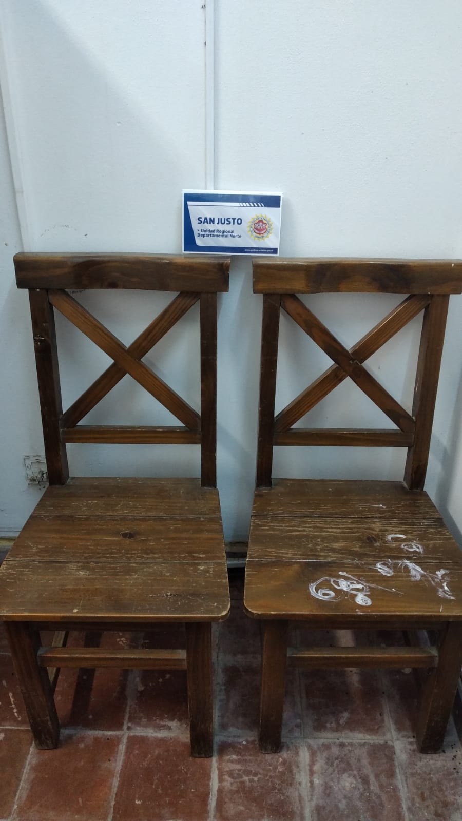 El dicho lugar se procedió al secuestro de (02) Sillas de Madera, (03) vasos de vidrio transparentes, (04) platos cuadrados de porcelana, de color Blanco, un (01) porta cuchillos de madera, con tres (03) cuchillos y (01) pela papas de plástico de color Negro.