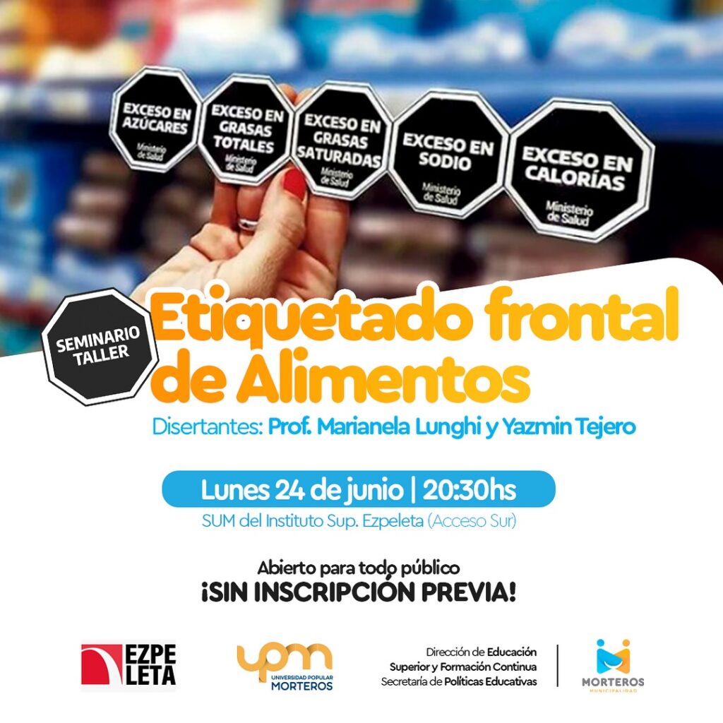 La Municipalidad de Morteros junto al Instituto Ezpeleta llevarán a cabo este lunes el Seminario taller sobre “Etiquetado Frontal de Alimentos” a las 20:30hs en el SUM del Instituto Ezpeleta (acceso sur). El seminario es de carácter libre, pudiendo participar toda persona interesada en el tema.