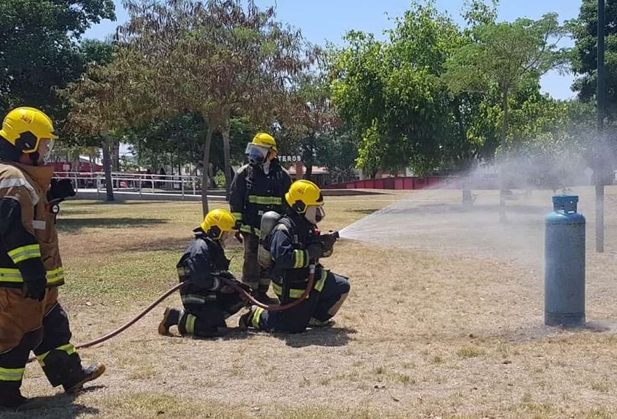 “Llegado al lugar nos encontramos con una fuga de gas en un cilindro de 45kg. Que se encontraba en la chata de una Pick -Up Chevrolet propiedad de la estación de servicio Shell. El cilindro tenía una fisura en el fondo. A lo que se procedió a dispersar el gas con niebla de agua, se retira el cilindro de la chata, se lo lleva a un lugar seguro en el predio del lago Sur. En dónde se lo abre para que se termine de vaciar mientras se continuaba disipando el gas con niebla. El cilindro quedó en el predio del lago en una zona descampada hasta que termine de emanar gas”.