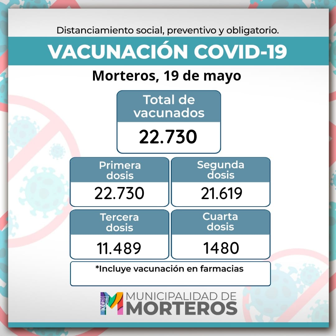 Según los datos oficiales difundidos este jueves el total de vacunados llega a 22.730 vecinos. Con segunda dosis 21.619, con tercera 11.489 y con cuarta 1.480.