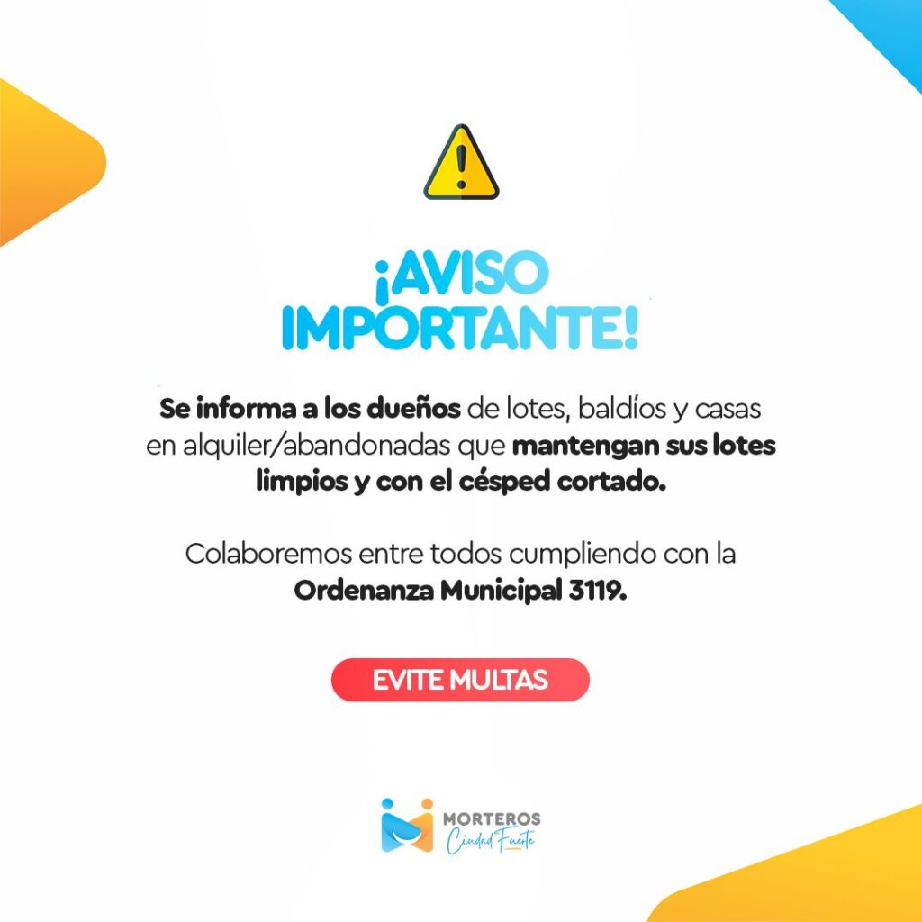 La Municipalidad de Morteros informó a los dueños de lotes, baldíos y casas en alquiler o abandonadas que mantengan dichos sectores limpios y con el césped cortados, “eviten multas”