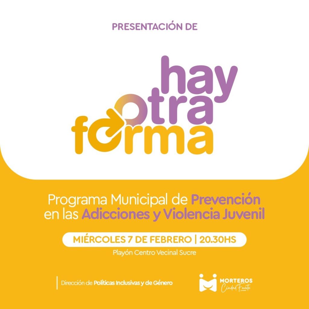 El Programa que lleva de nombre la frase “Hay otra forma” tiene como objetivo principal la “promoción y prevención” para abordar las problemáticas de niñez y adolescencia que se presentan en la ciudad de Morteros.