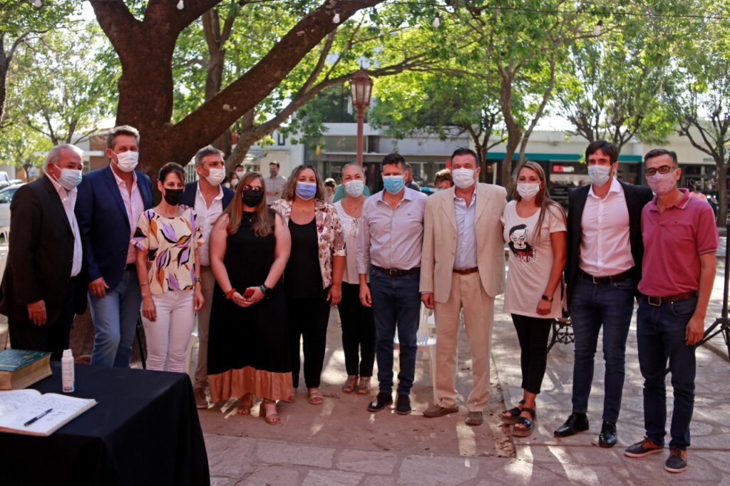 El acto se llevó a cabo al aire libre, con pocos asistentes, frente al Centro Cultural Municipal, donde el intendente José Bria tomó juramento, con los decretos correspondientes, a Javier Orlando Nari como Secretario de Gobierno, José Eduardo Polleti como Sec. de Obras, Servicios y Viviendas, Fernando Javier Geddo como secretario de Salud, Luciana Mabel Lizardo como Secretaria de Cultura y Gonzalo Cresta como Asesor Letrado.