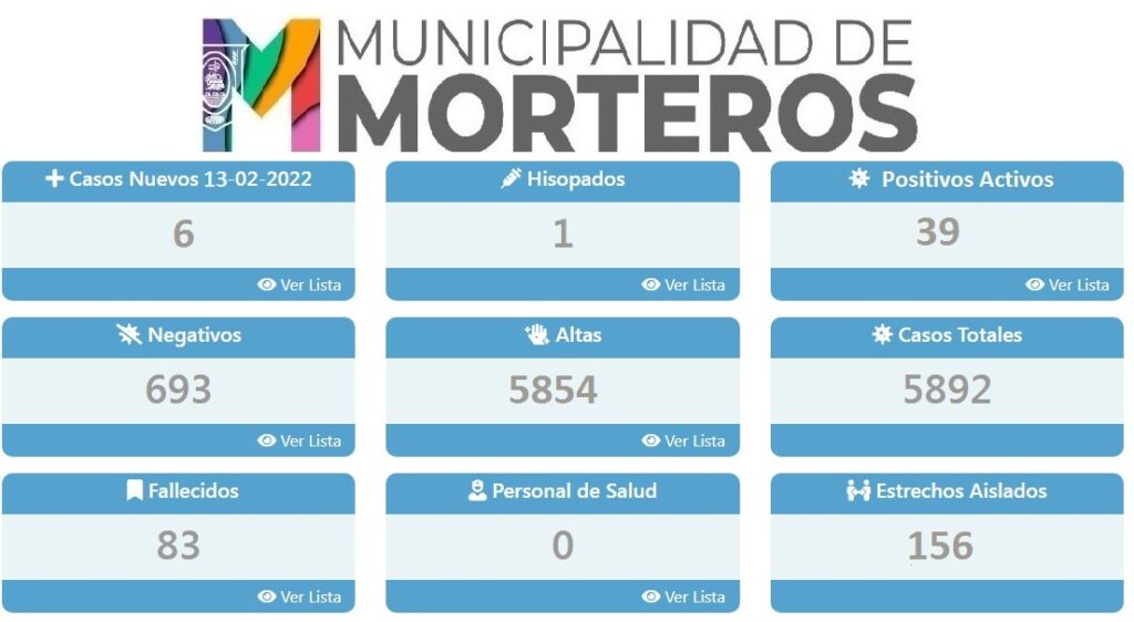 MORTEROS: SEIS NUEVOS POSITIVOS ESTE DOMINGO