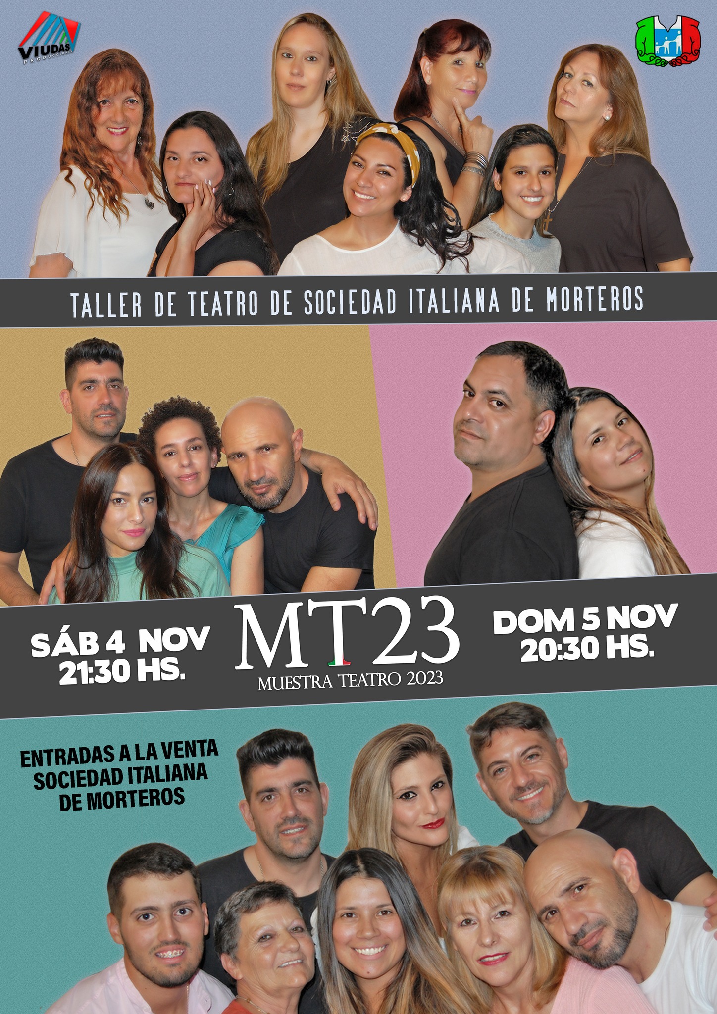 El taller de teatro de Sociedad Italiana realizarán su muestra de Teatro 2023 el 4 y 5 Noviembre con cuatro obras: “Noche en familia”, “Madre hay una sola”, “Papá querido y Yolanda”.