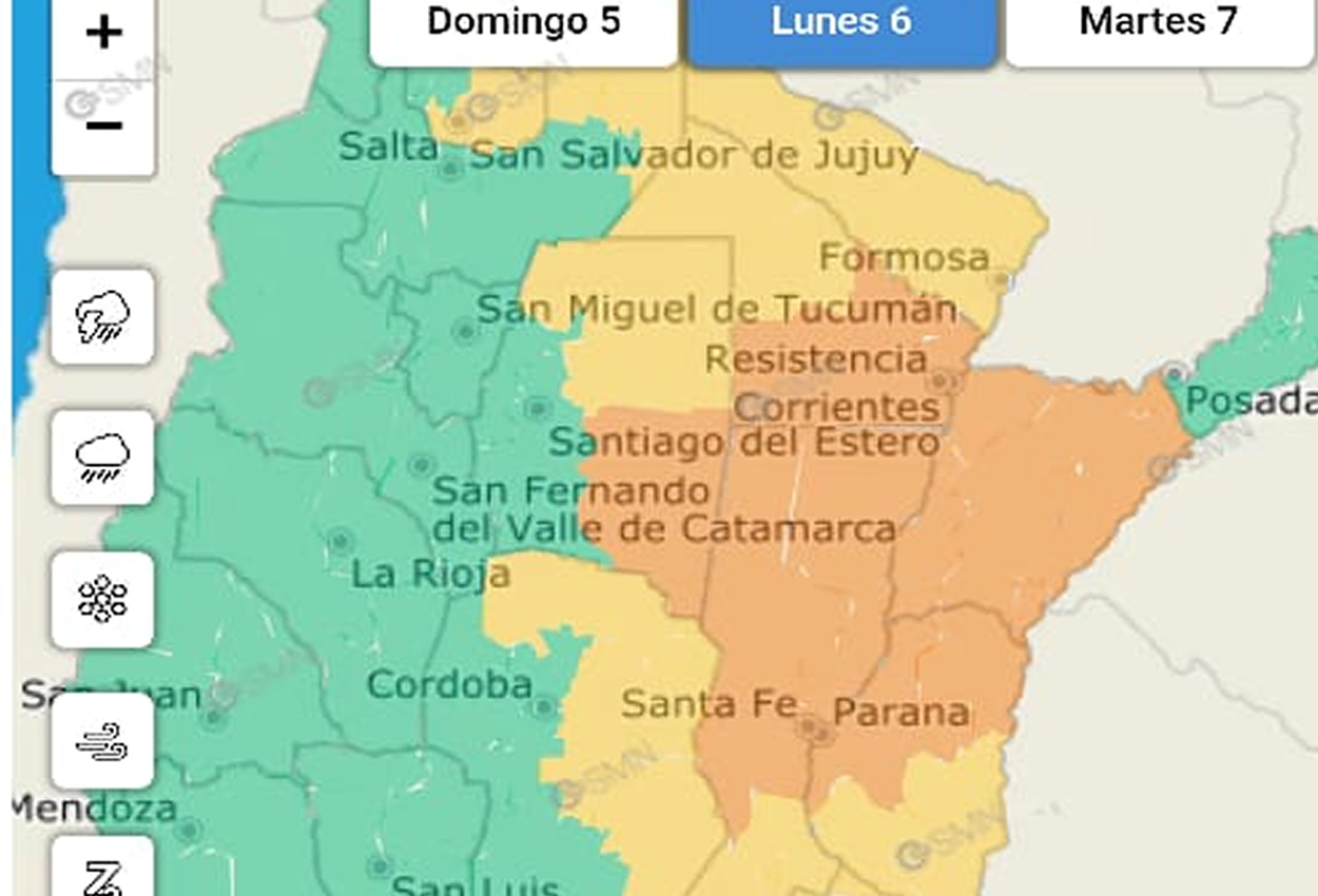 El Servicio Meteorológico emitió un alerta de nivel amarillo para la región del Departamento San Justo, mientras que el Departamento San Cristóbal se encuentra bajo alerta naranja, lo que indica la probabilidad de fenómenos meteorológicos de mayor intensidad.