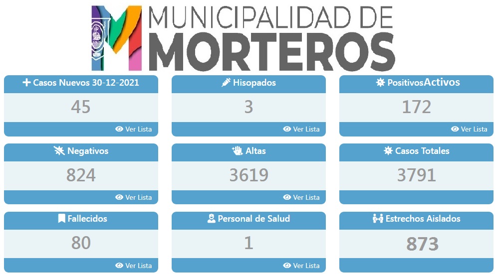 A horas de terminar este año 2021 y Mortero sigue con altos números de casos nuevos por coronavirus.