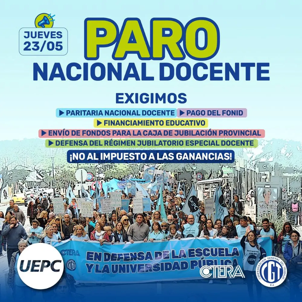 Los sindicatos docentes que confluyen en la Confederación de Trabajadores de la Educación (Ctera), convocaron a un paro de 24 horas para este jueves 23 de mayo en las escuelas de todo el país, en reclamo de un aumento salarial.