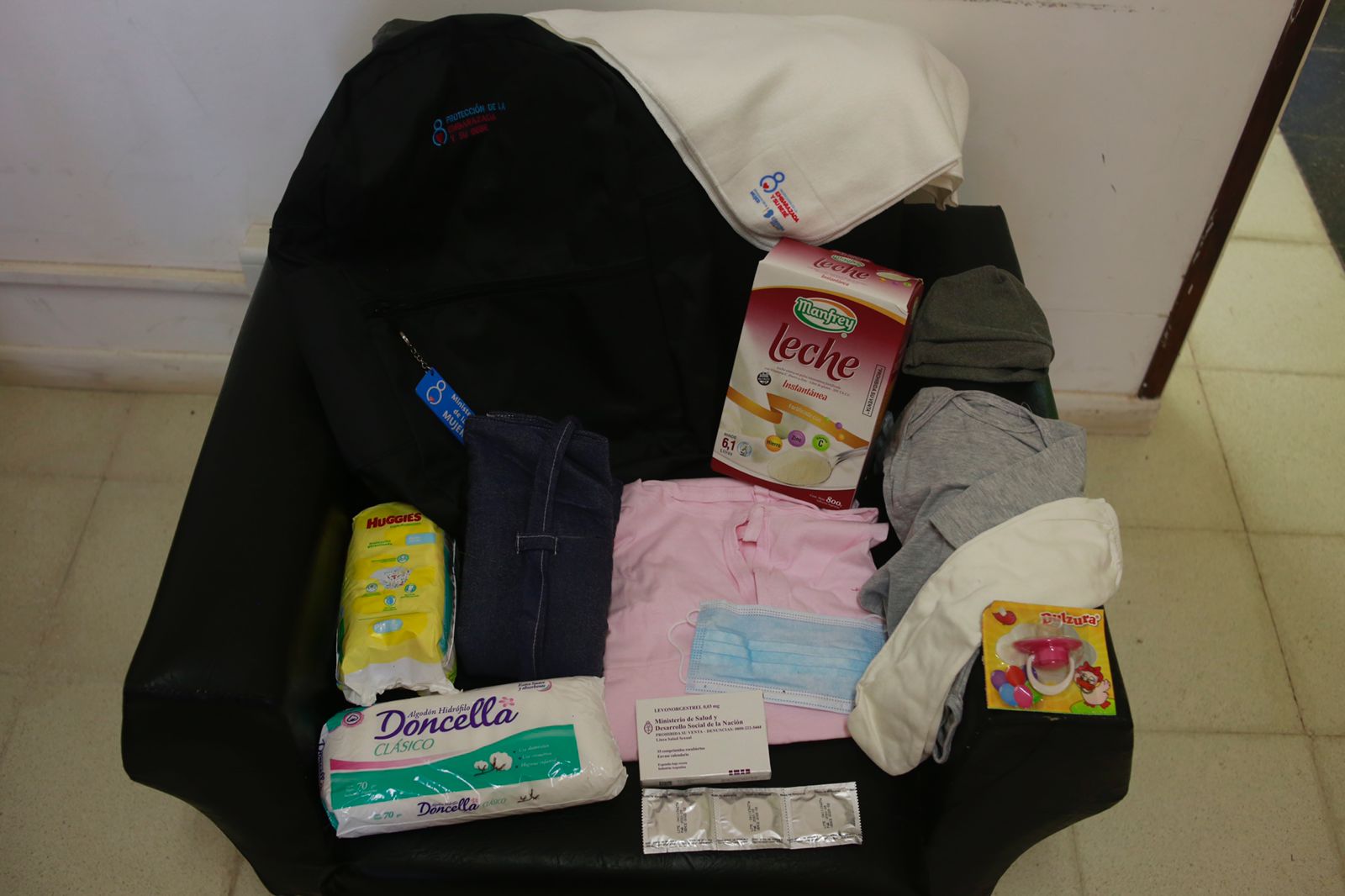 Cada ajuar contiene bolso materno, ranita, gorrito, body, mantita, toallón, leche fortificada, algodón, pañales, chupete, gasas, óleo calcáreo camisón, neceser (anticonceptivo para la lactancia y preservativo), además de elementos de protección contra el Covid-19.
