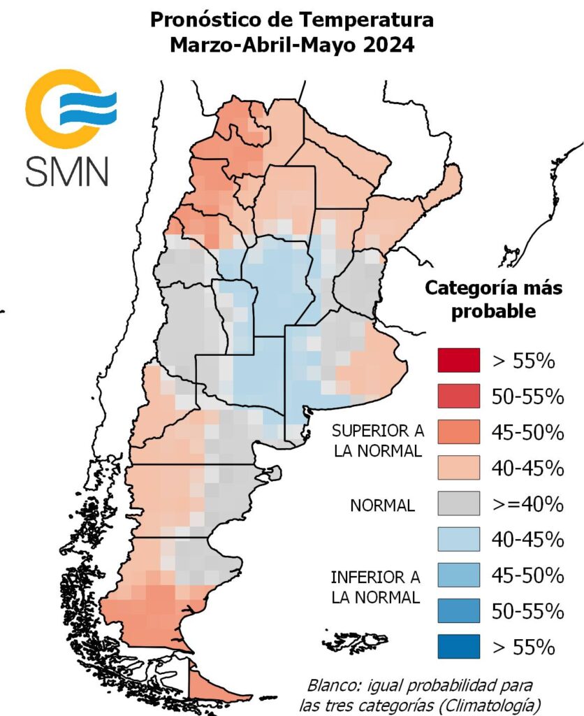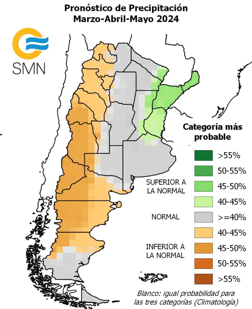 El Servicio Meteorológico Nacional difundió su informe de las condiciones más probables para el trimestre marzo-abril-mayo de 2024.