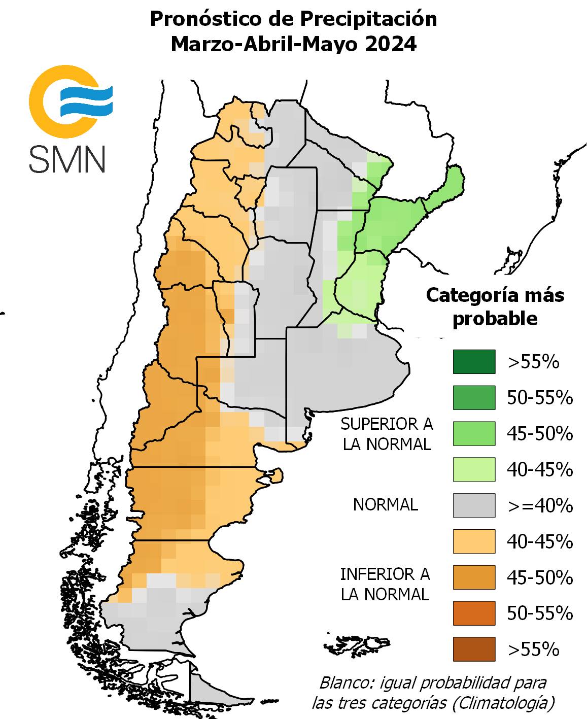 El Servicio Meteorológico Nacional difundió su informe de las condiciones más probables para el trimestre marzo-abril-mayo de 2024.