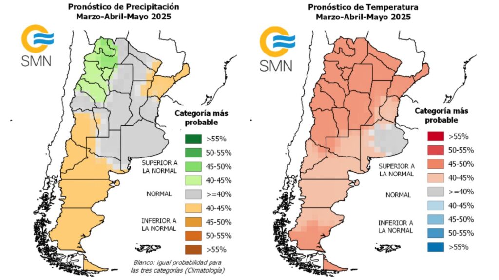 Y en cuanto a las precipitaciones, en nuestra región, en la parte norte, sur del litoral, Buenos Aires y centro-este de La Pampa, se espera que se mantengan en los valores normales para la temporada.