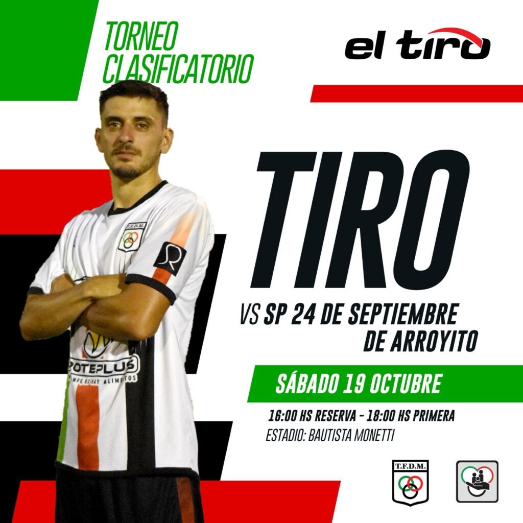 Tiro Federal se enfrenta este sábado a Sp 24 de Septiembre de Arroyito por el Torneo Clasificatorio. A las 16hs Reserva y a las 18hs Primera.