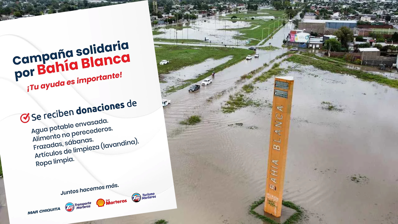 “Las fuertes inundaciones en Bahía Blanca dejaron a muchas familias en una situación crítica. Desde Transporte Morteros, Shell Morteros, Turismo Morteros y la empresa Mar Chiquita, nos unimos para llevar ayuda a quienes más lo necesitan”, destacan en una publicación en redes sociales.