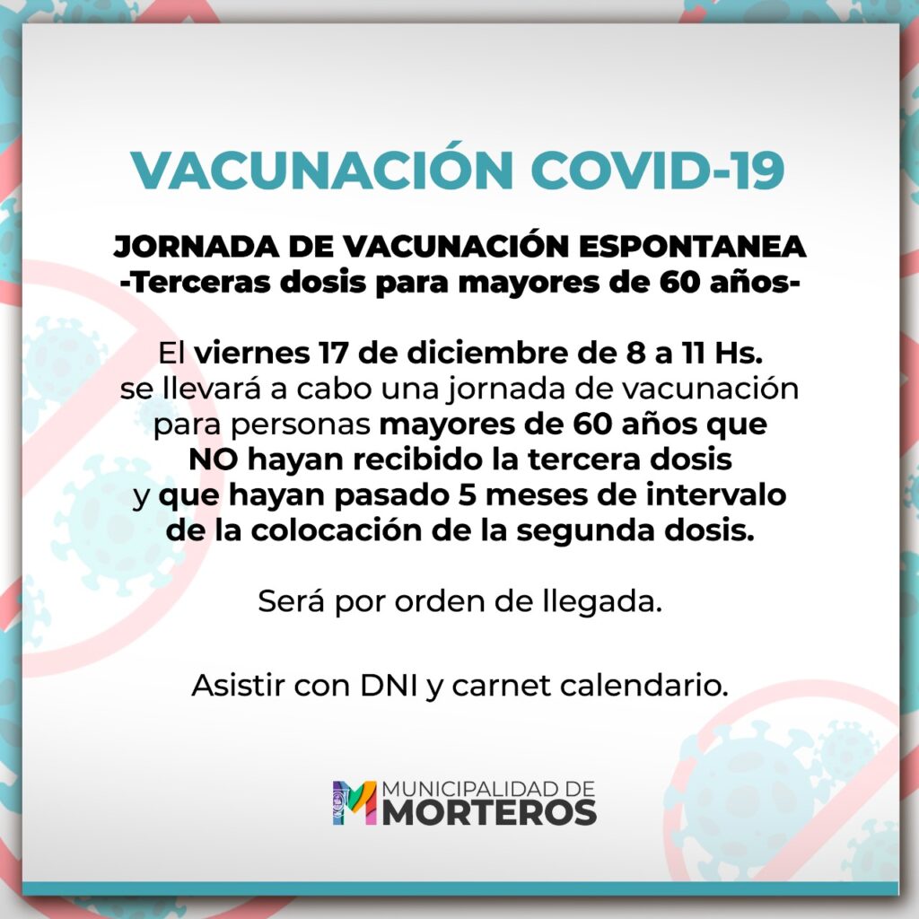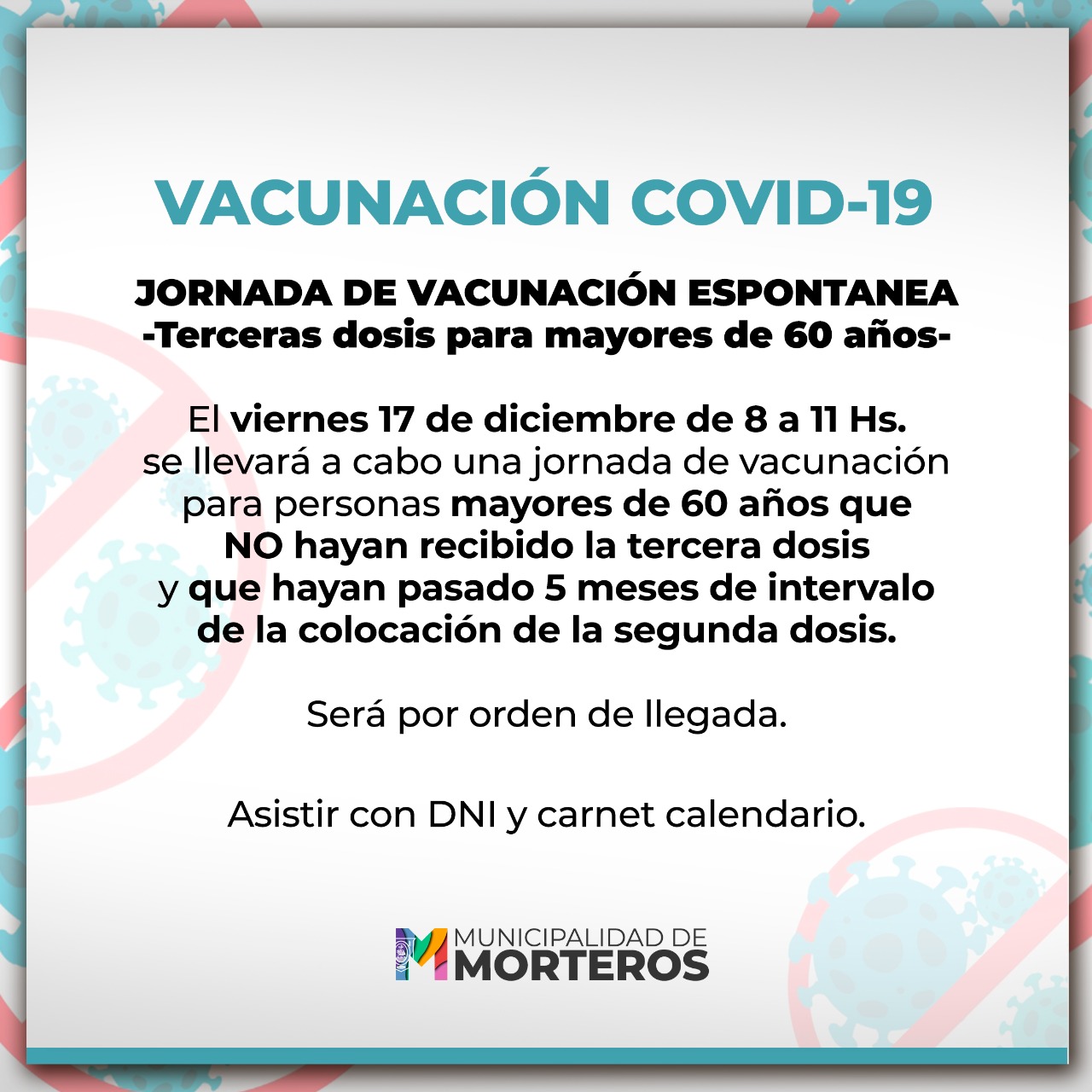 Este viernes 17 de 8 a 11 se llevará a cabo una jornada de vacunación para personas mayores de 60 años que NO hayan recibido la tercera dosis y que hayan pasado los 5 meses de intervalo de la colocación de la segunda dosis.