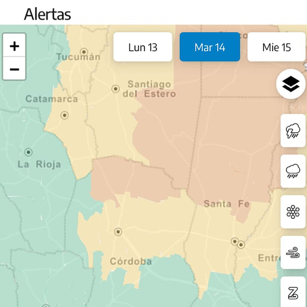 El Sistema de Alerta Temprana destaca para la región del departamento San Justo un alerta amarillo por tormentas fuertes. En tanto, en el departamento San Cristóbal el nivel es naranja, con fenómenos de mayor intensidad, según el organismo. Para este martes, la máxima podría alcanzar los 25°, mientras que la mínima rondará los 17°.